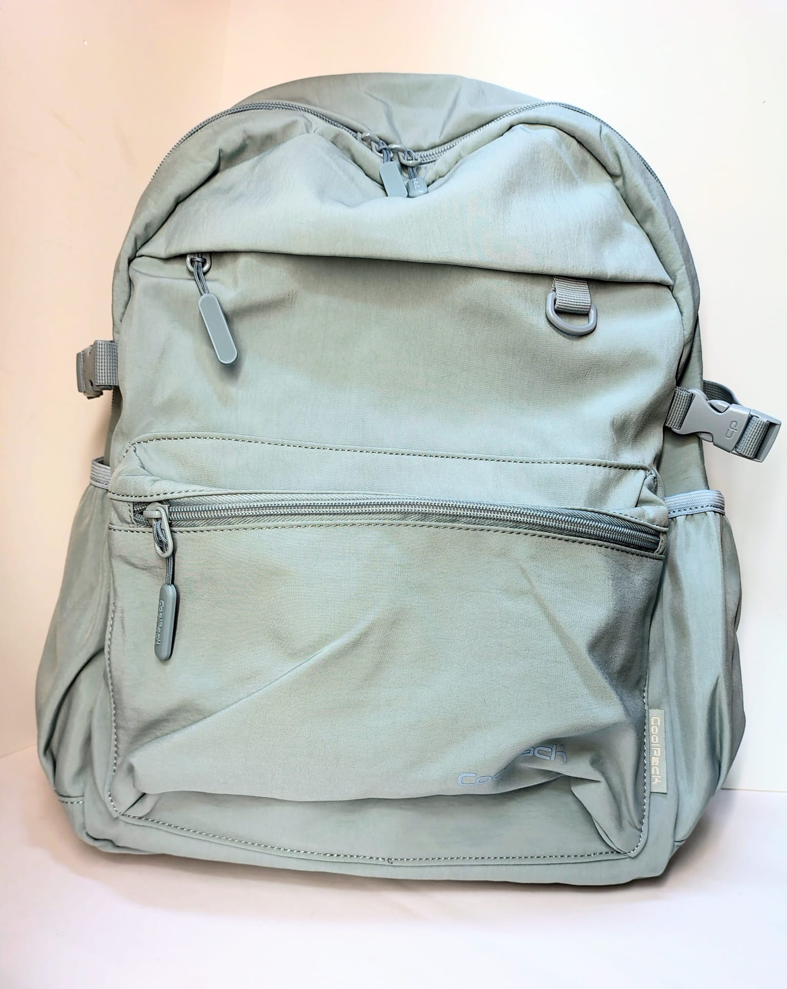 Mochila ligera verde menta, ideal para llevar a cualquier lugar.