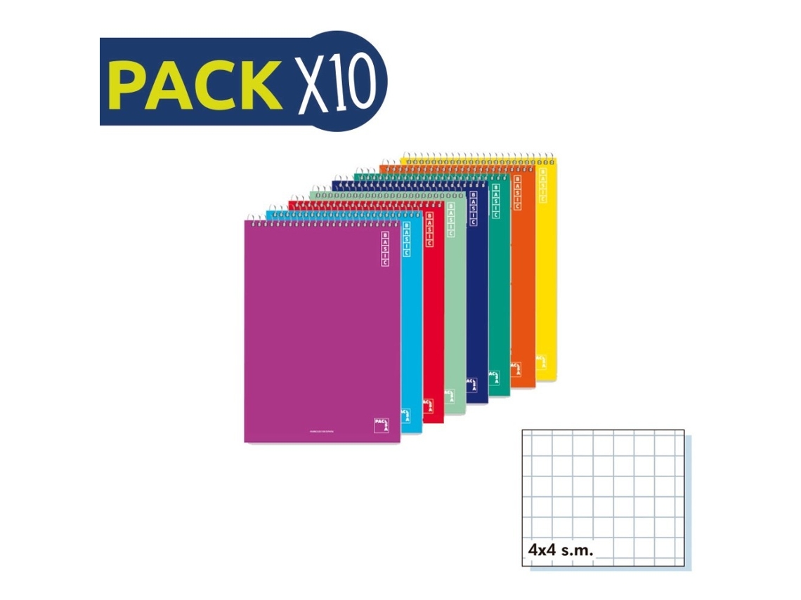 PACK 10 BLOC ESPIRAL 1/16 CUADRÍCULA APAISADO 80 HOJAS PACSA